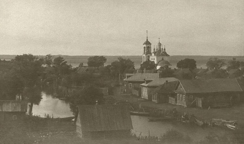 Вид на Рыбную слободу1900–1935Датировка условная. Снято предположительно с колокольни Филипповской церкви.Странно что в кадр не попала Введенская церковь. Видимо к моменту фотографирования снесена уже. Тогда датировка после 1929г. Но жанр "фотография-открытка" обычно до революционный."Фотография-открытка. Вид на реку Трубеж, Рыбную слободу, церковь Сорока Мучеников и озеро"
